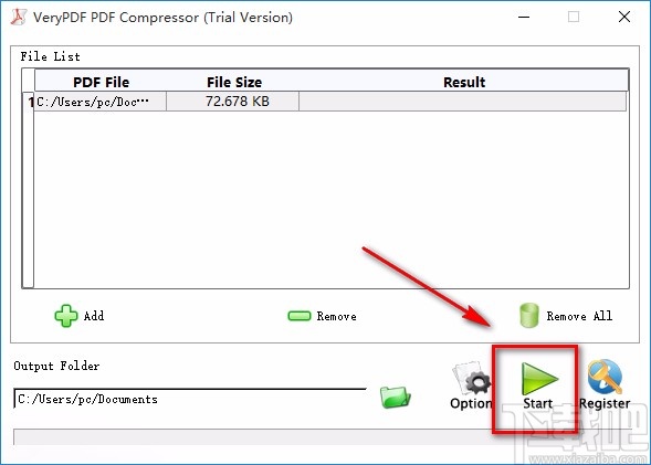 5.完成以上所有步骤后,我们在界面右下角找到“Start”按钮,点击该按钮就可以开始压缩PDF文件。