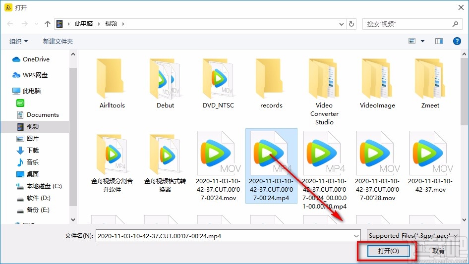 2.接着界面上会出现一个文件添加页面,我们在页面上选中需要添加滤镜的视频后,再点击页面右下角的“打开”按钮即可。