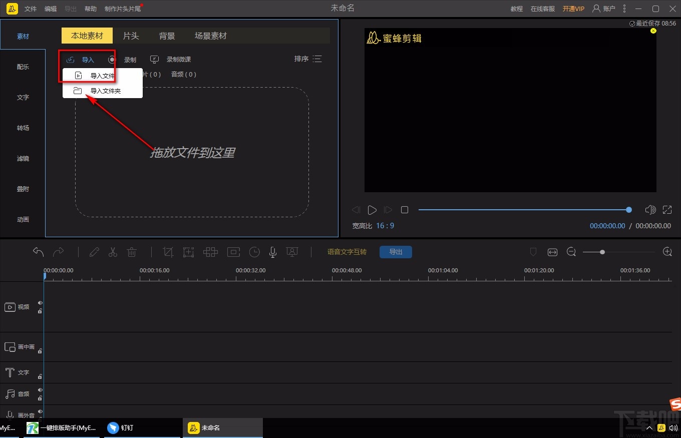1.首先打开软件,我们在界面左上方找到“导入”选项并点击,其下方会出现一个下拉框,在下拉框中选择“导入文件”选项。