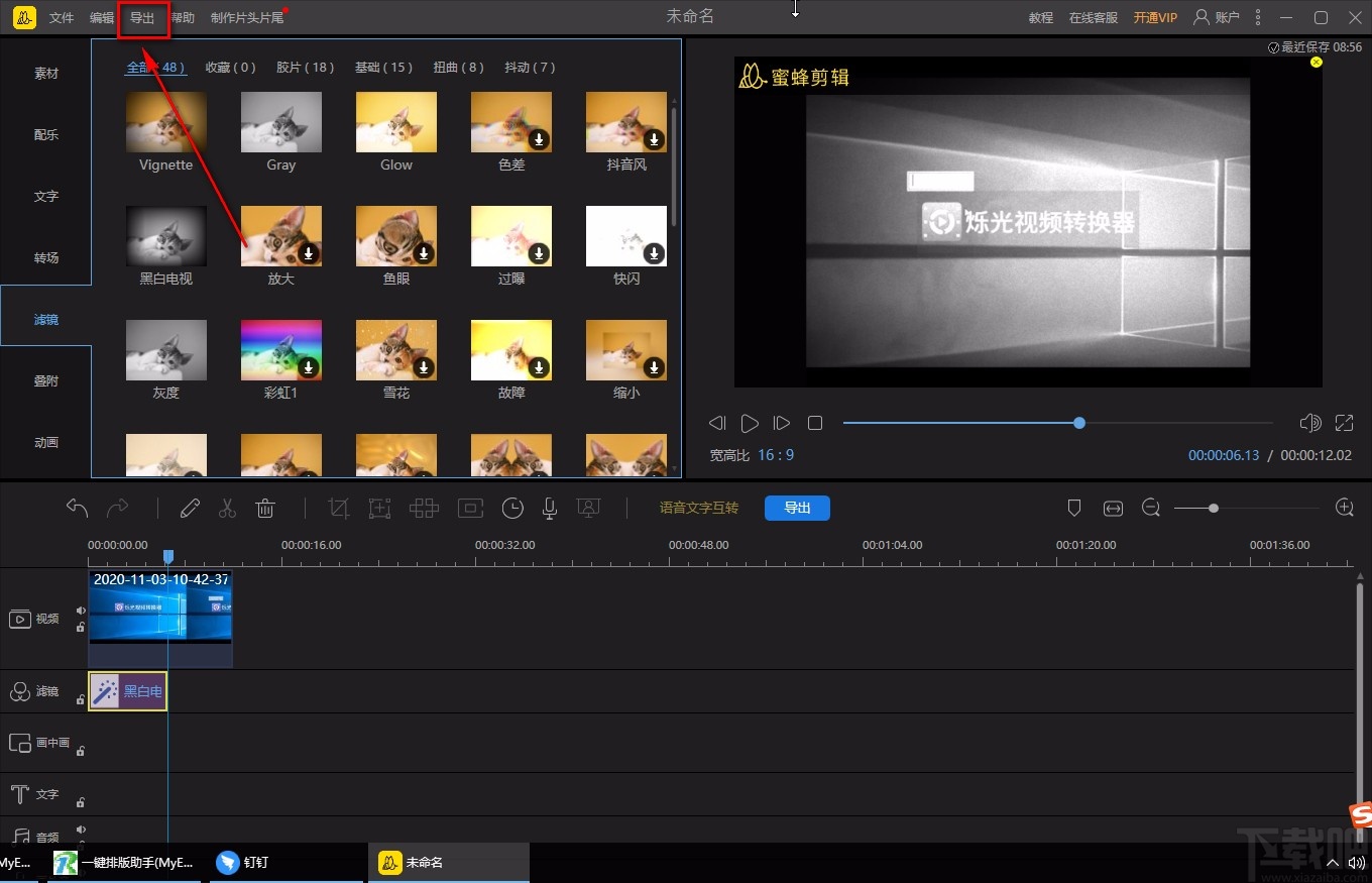 9.完成以上所有步骤后,我们在界面左上方找到“导出”选项,点击该选项就可以将视频导出软件。