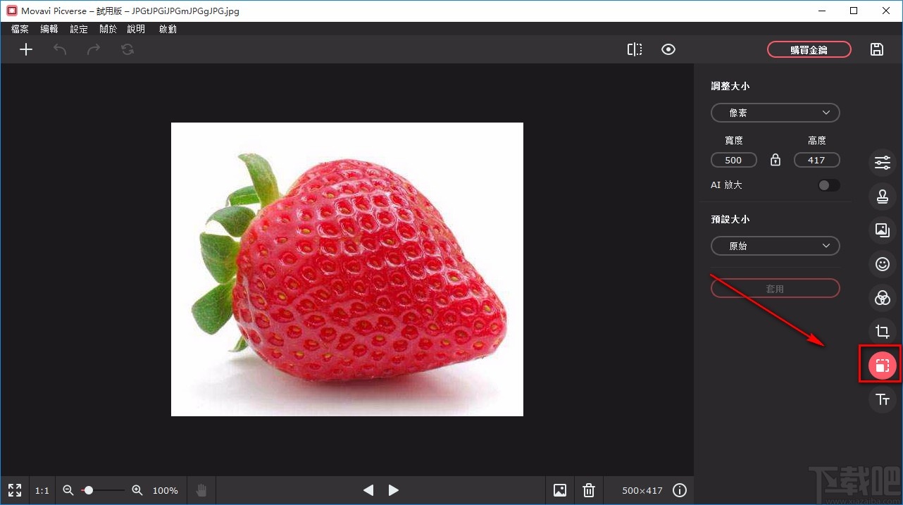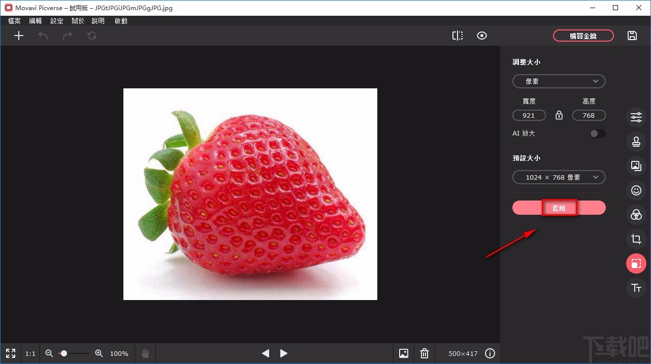 7.完成以上所有步骤后,我们在界面右侧找到“套用”按钮,点击该按钮就可以将调整大小的操作运用到图片上。