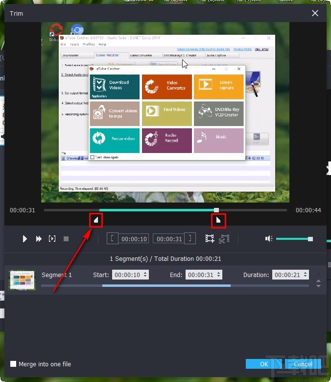 3.点击添加好想要剪切的视频之后,在界面上方找到Trim这个功能选项,点击之后进入到剪切视频的界面。