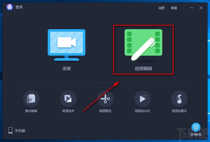 1.首先打开软件,我们在界面上找到“视频编辑”选项,点击该选项就可以进入到视频编辑页面。