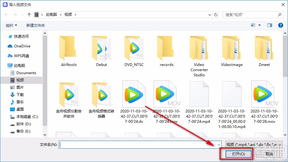3.在文件添加页面中,我们选中需要配音的视频文件后,再点击页面右下角的“打开”按钮即可。