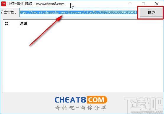 1.首先第一步我们打开软件之后在软件的界面分享链接位置,将想要下载图片的小红书链接粘贴到其中,然后点击抓取按钮即可开始抓取。