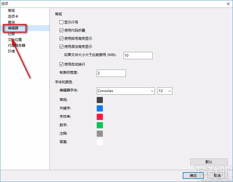 4.然后在选项窗口中,我们在窗口左上方找到“编辑器”选项,点击该选项,窗口中就会显示出相应的操作选项。