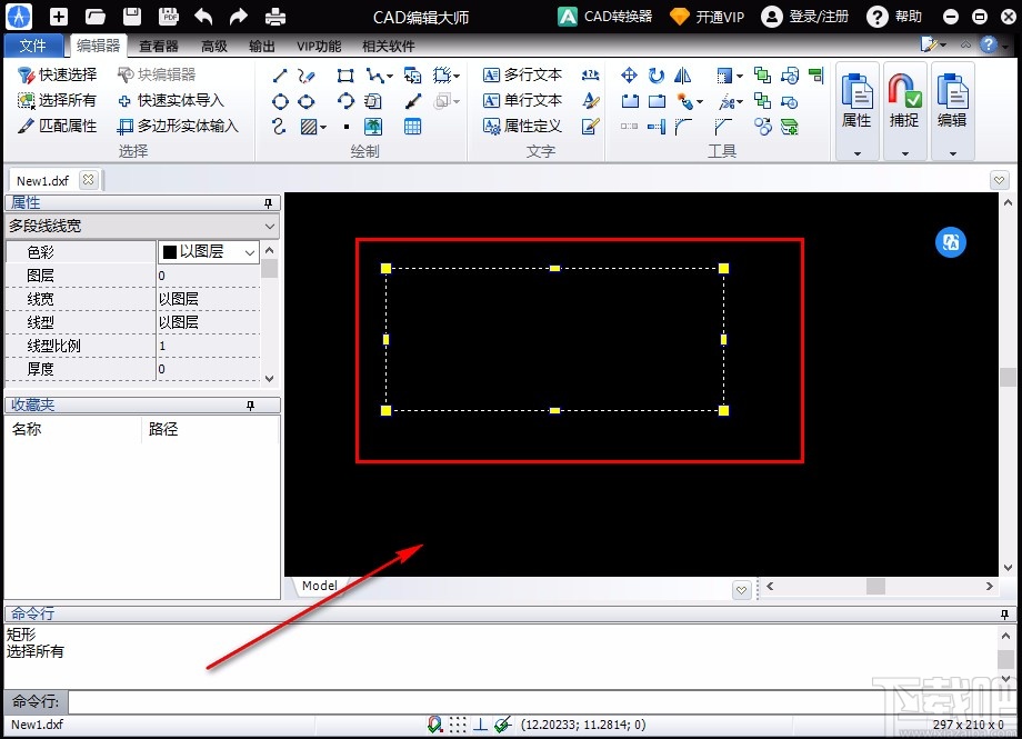 1.首先打开软件,小编在软件中绘制一个矩形,以便接下来给大家演示测量距离的操作方法。