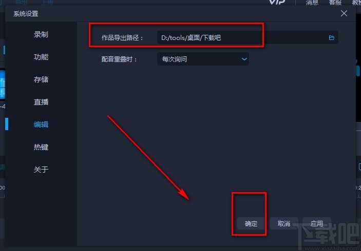6.完成以上所有步骤后,我们在窗口中就可以看到作品导出路径是刚刚所设置的路径了,这时候点击窗口右下角的“确定”按钮就可以了。