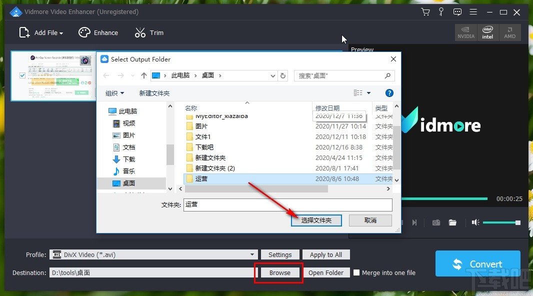 6.添加好字幕文件之后,下一步点击下方的Browse浏览按钮,点击这个浏览按钮之后在出现的界面中根据自己的需求来选择输出文件夹即可。