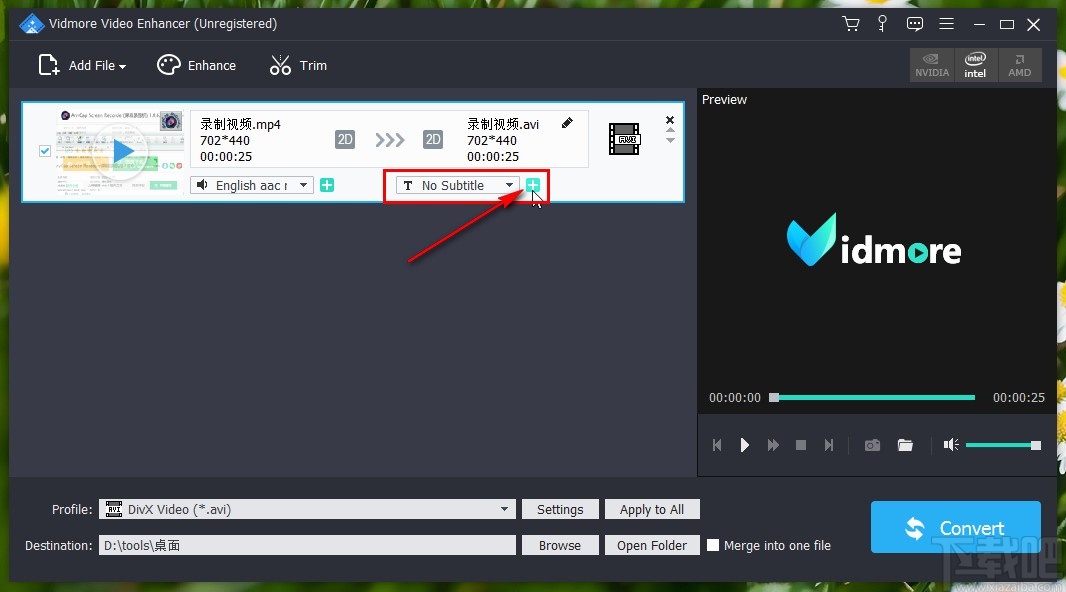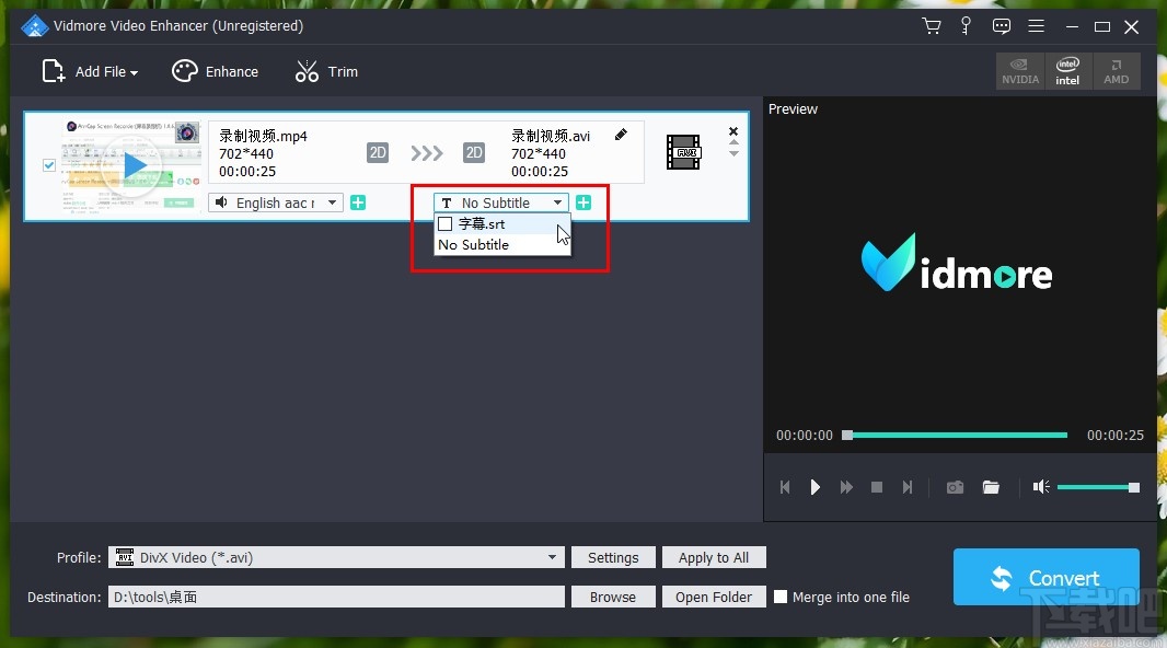 使用上述教程中的操作方法我们就可以在使用Vidmore Video Enhancer这款软件的时候给视频添加字幕文件了,有需要的朋友赶紧试一试这个方法吧,希望这篇教程能够帮到大家。