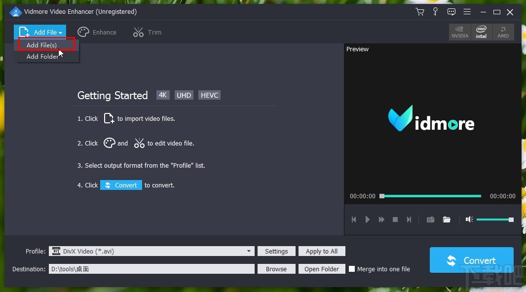 1.首先第一步我们打开软件之后,在界面左上角找到Add Files这个添加文件选项,点击之后准备添加想要处理的视频文件。