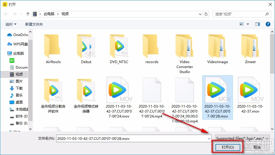 2.接着就可以打开文件添加页面,我们在页面中选中需要添加动画的视频后,再点击页面右下角的“打开”按钮即可。