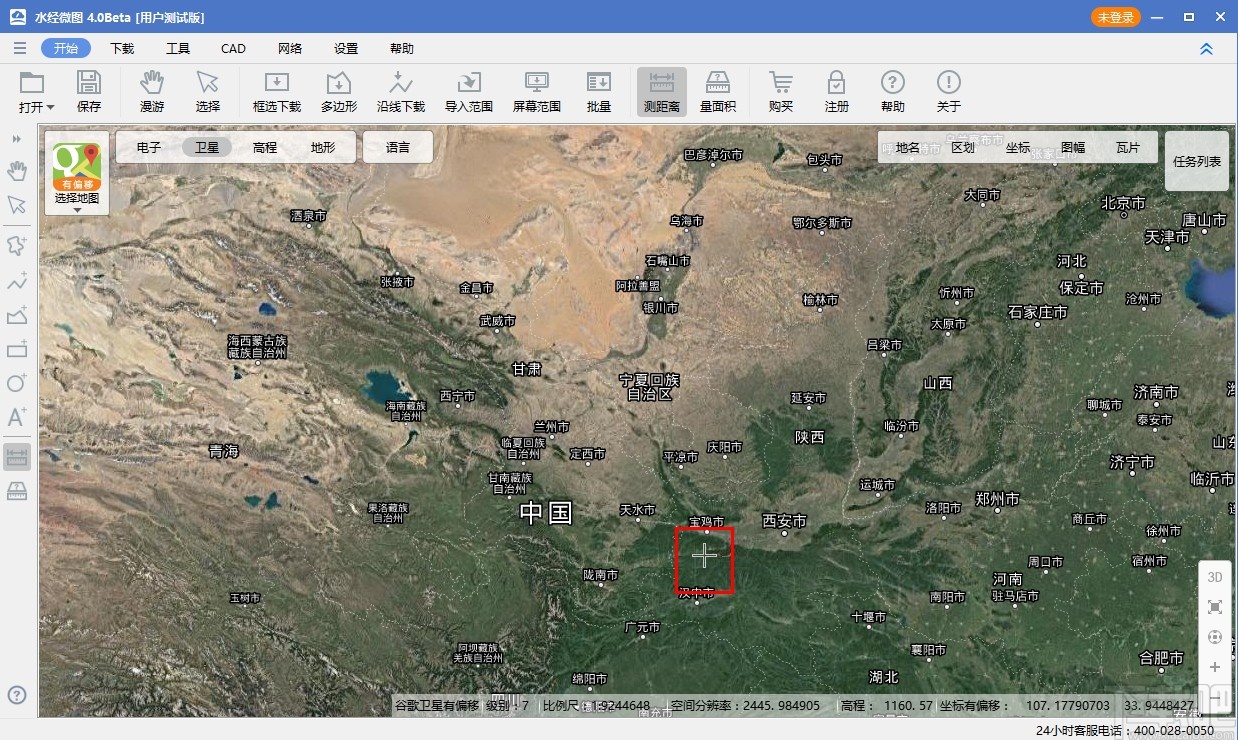 2.打开测距离功能之后,我们将鼠标移动到地图界面就可以看到鼠标指针变成十字状态了,如下图中所示。