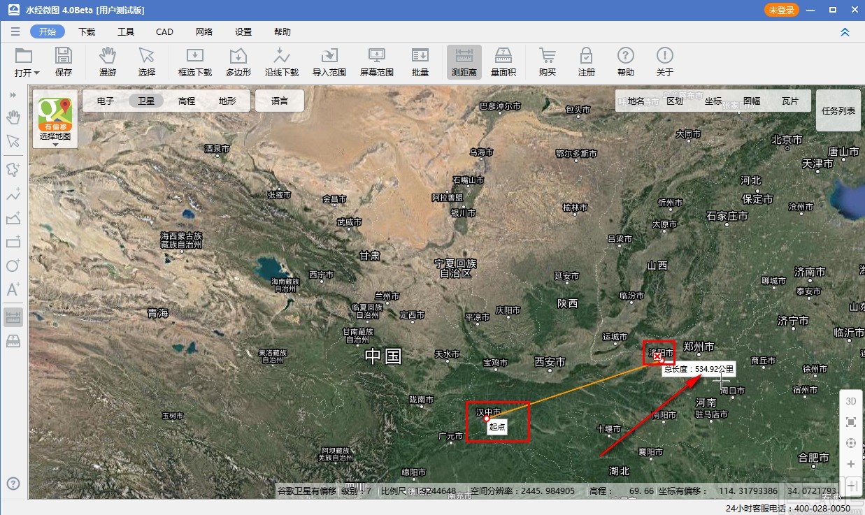 使用上述教程中的操作方法我们就可以在水经微图这款软件中测量距离了,还不知道要如何操作的朋友赶紧试一试这个方法吧,希望能够帮助到大家
