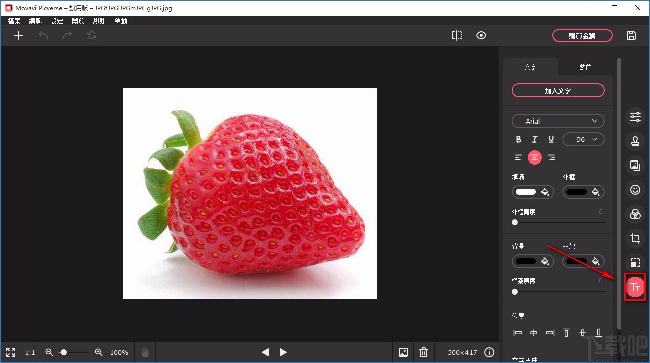 2.将图片添加到软件后,我们在界面右下角找到下图所示的T字图标按钮,点击该按钮再进行下一步操作。