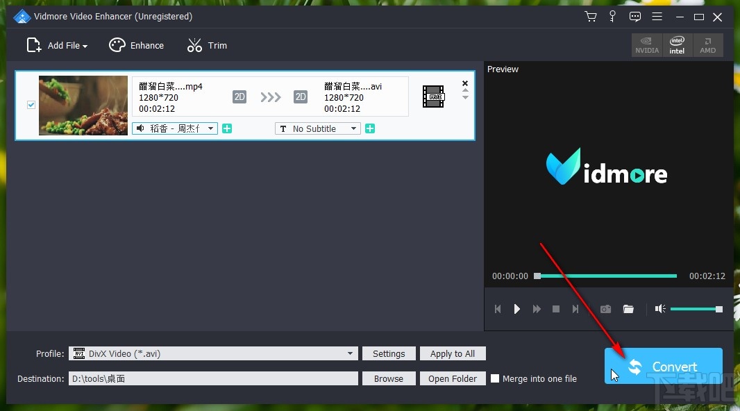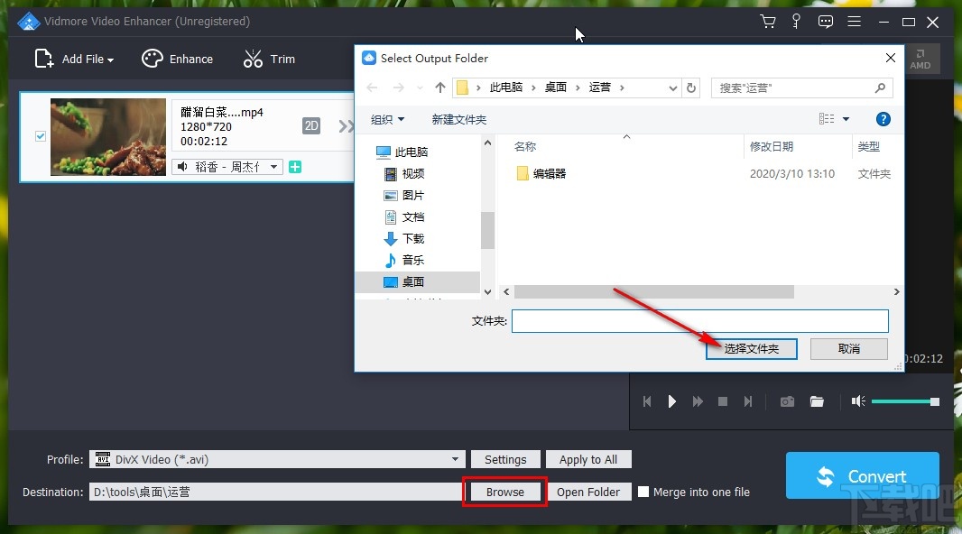 7.最后一步我们设置好选择文件夹之后,点击软件界面右下角的这个Convert转换按钮,就可以将添加背景音乐之后的视频转换保存下来了。