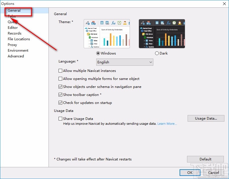 3.然后界面上就会出现一个选项窗口,我们在窗口左上角找到“General”选项并点击,窗口中就会出现很多相应的选项。