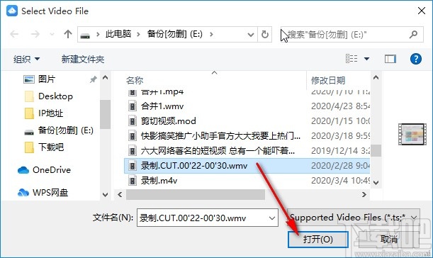 2.选择目标视频文件之后,下一步在出现的界面中,选中想要去噪的视频,点击右下方的打开按钮即可在软件中打开视频。
