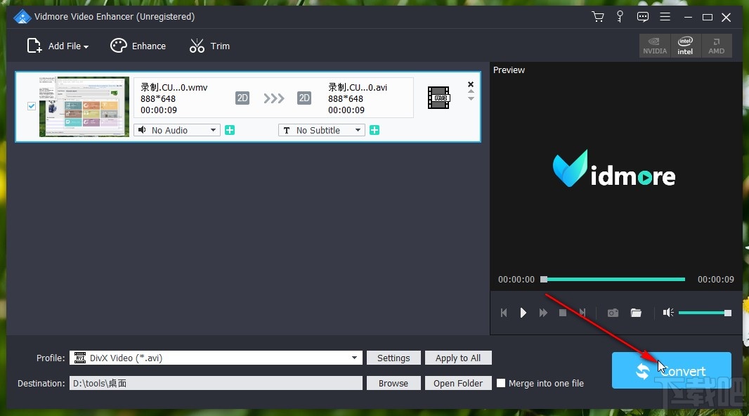 8.最后点击这个选择文件夹按钮之后,在界面的右下角就可以看到一个Convert转换按钮了,点击它即可去除视频噪音并保存到输出目录中。