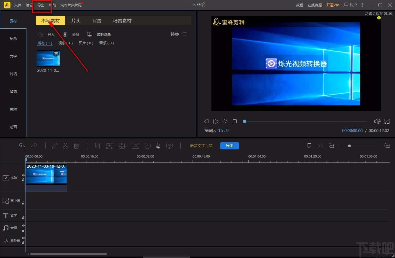 7.完成以上所有步骤后,我们在界面左上方找到“导出”按钮,点击该按钮就可以将调整对比度后的视频导出软件了。