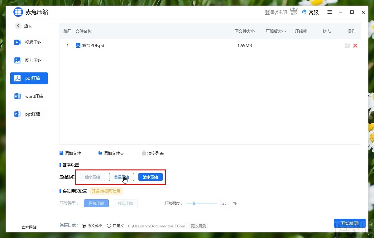 使用上述教程中的操作方法我们就可以在赤兔压缩这款软件中压缩PDF文件了,有需要的朋友赶紧试一试这个方法吧,希望这篇方法教程能够对大家有所帮助。