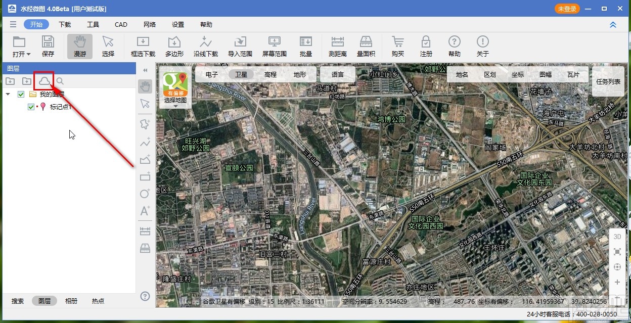 2.点击这个图标之后打开自己的标记数据图层界面,可以看到当前所有的标记数据和图层信息,如下图中所示,然后我们点击上方云朵这个图标。