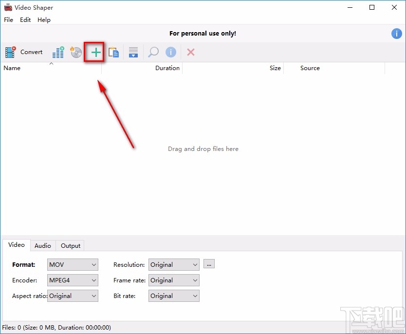 1.首先打开软件,我们在界面上方找到绿色的加号图标按钮,点击该按钮就可以打开文件添加页面。