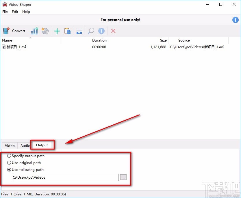 5.接下来在界面下方找到“Output”选项,该选项表示输出目录的意思;其下方有三个选项,从上往下分别表示特定输出目录、原文件夹、自定义目录的意思,我们根据自己的需要进行选择;如果选择自定义目录,则还要点击其右下角的三个小点按钮设置文件的保存位置。