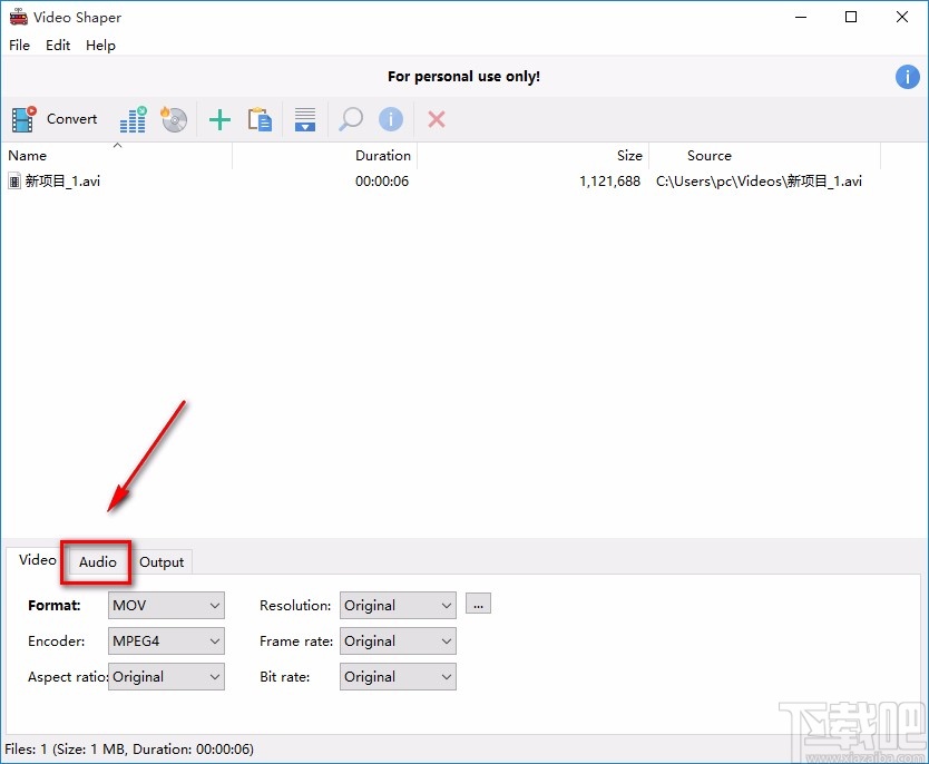 3.将视频文件添加到软件后,我们在界面下方找到“Audio”选项,点击该选项再进行下一步操作。