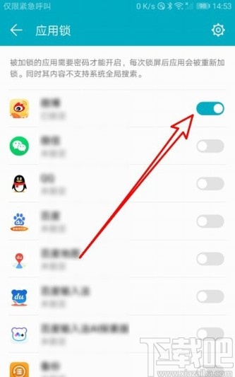 5.之后设置好密码我们就可以选择想要开启应用锁的应用了,选择想要开启应用锁的应用之后,点击它右边的开关打开即可。