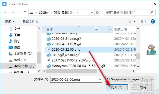 6.点击这个三点按钮之后就会进入到选择水印图片的界面,我们根据自己的需求选择想要制作成水印的图片之后,点击下方的打开按钮。