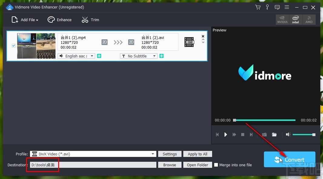 8.最后一步我们点击应用按钮之后,回到软件主界面,设置好输出路径之后点击界面右下角的Convert转换按钮就可以开始转换输出添加图片水印的视频文件了。