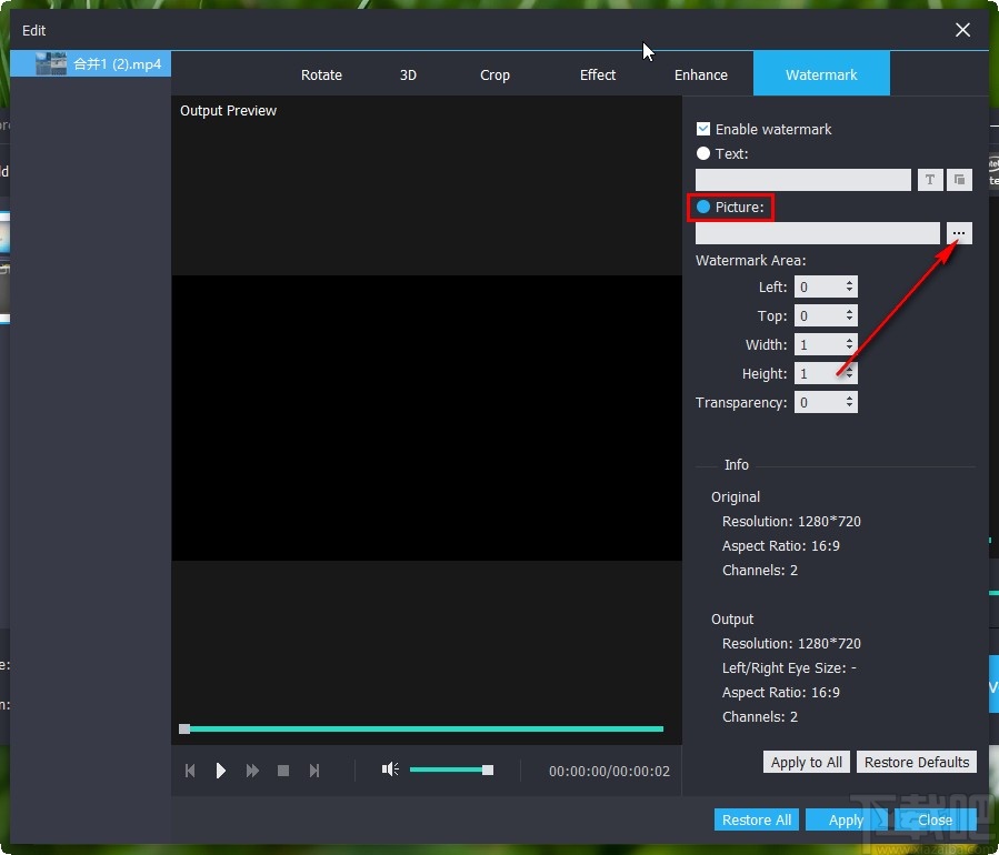 5.选择这个使用水印功能选项之后,下一步我们选择为Picture这个图片水印选项,如下图中所示,接下来在点击右边的三点按钮,如下图中所示。