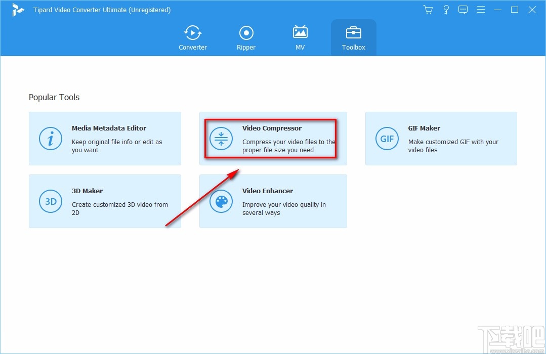 2.接着在Toolbox页面中,我们在页面上找到“Video Compressor”选项,点击该选项就可以打开视频压缩窗口。