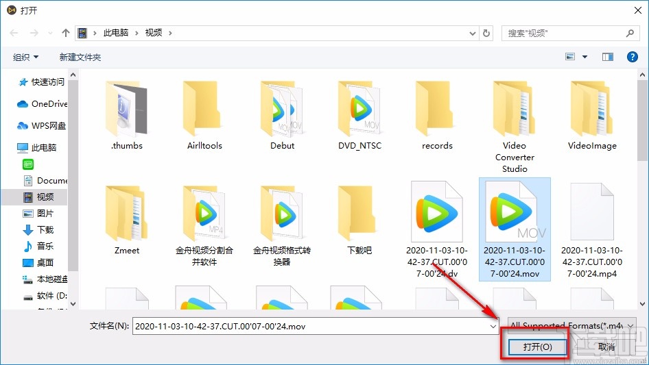 2.在文件添加页面中,我们选中需要进行分割操作的视频后,再点击页面右下角的“打开”按钮即可。