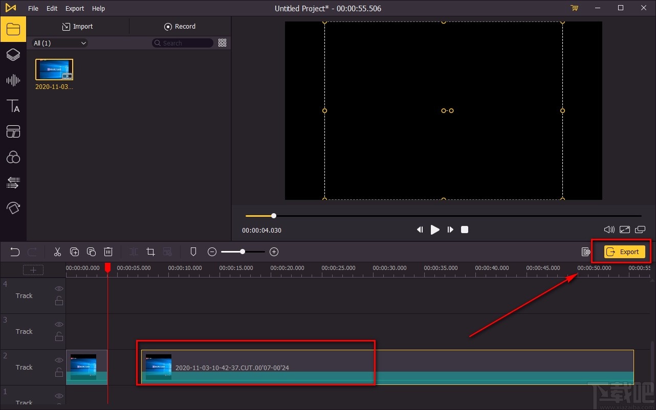 6.最后我们选中需要导出的部分视频,再点击界面右侧的“Export”按钮,就可以将视频导出软件了。