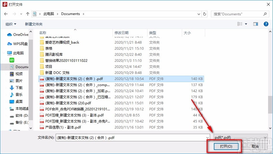2.接着就会进入到文件添加页面,我们在页面中将需要提取页面的PDF文件选中,再点击页面右下角的“打开”按钮即可。