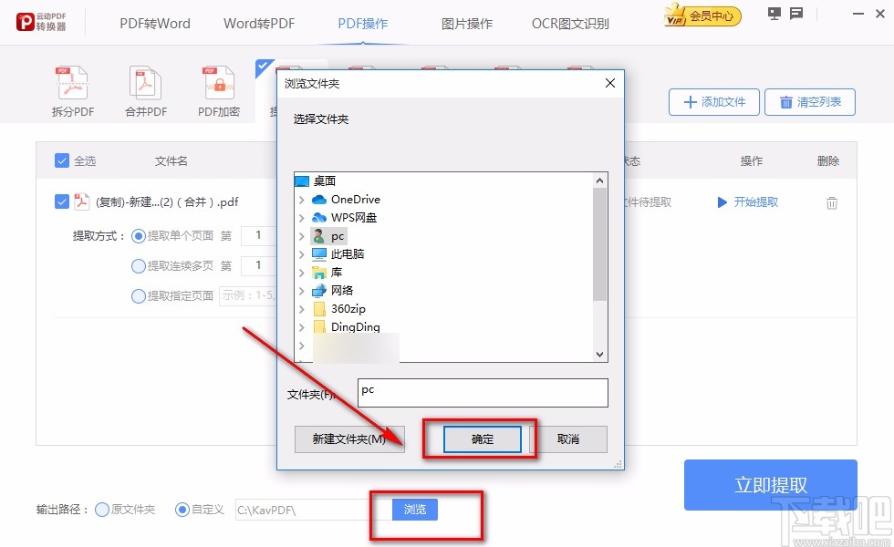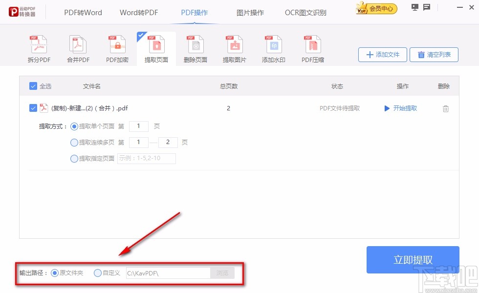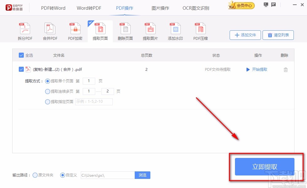 7.完成以上所有步骤后,我们在界面右下角找到蓝色的“立即提取”按钮,点击该按钮就可以提取PDF页面了。