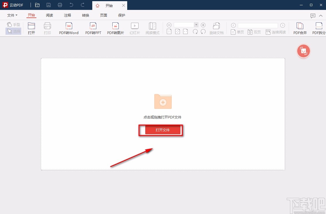 1.首先打开软件,我们在界面正中间可以看到一个红色的“打开文件”按钮,点击该按钮就可以进行添加文件的操作。