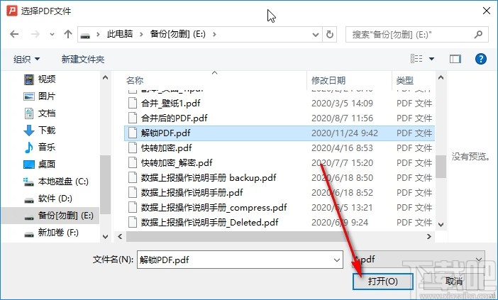3.点击添加文件之后,接下来下一步就会打开一个选择文件的界面,在这个界面中我们选中目标PDF文件之后点击打开按钮即可。