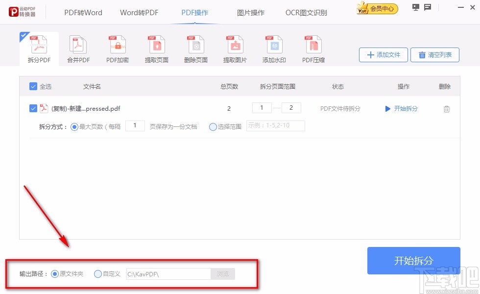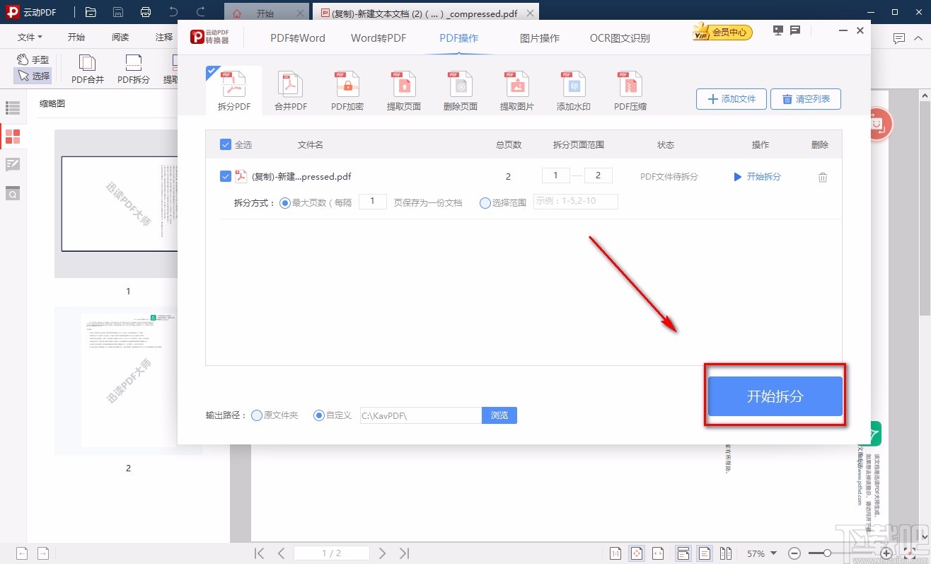9.完成以上所有步骤后,我们在页面右下角找到“开始拆分”按钮,点击该按钮就可以开始拆分PDF文件了。