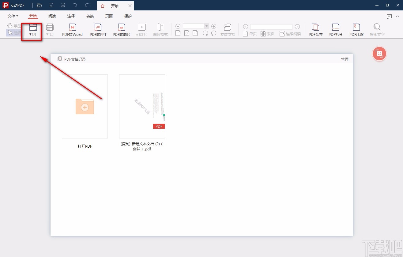 1.首先打开软件,我们在界面左上方找到“打开”按钮,点击该按钮就可以打开文件添加页面。