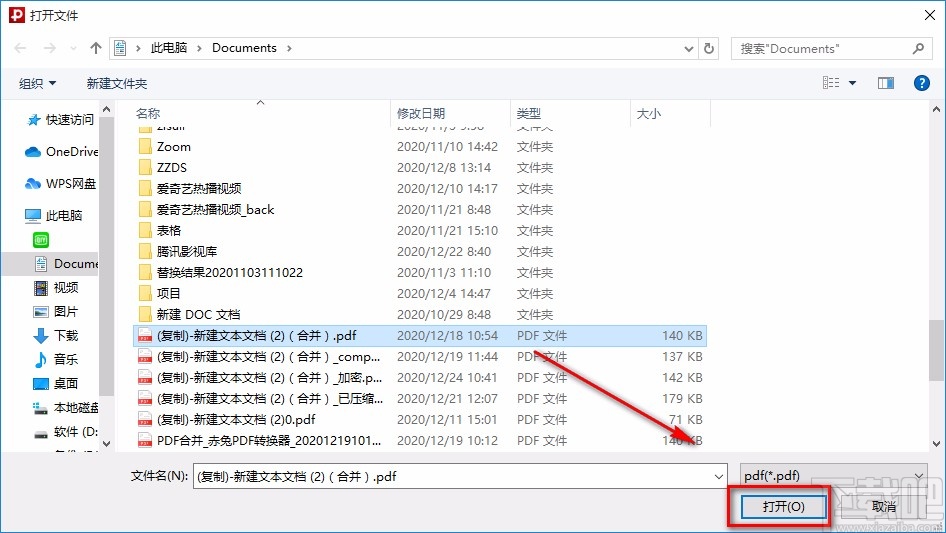 2.在文件添加页面中,我们选中需要进行拆分操作的PDF文件,再点击页面右下角的“打开”按钮就可以了。