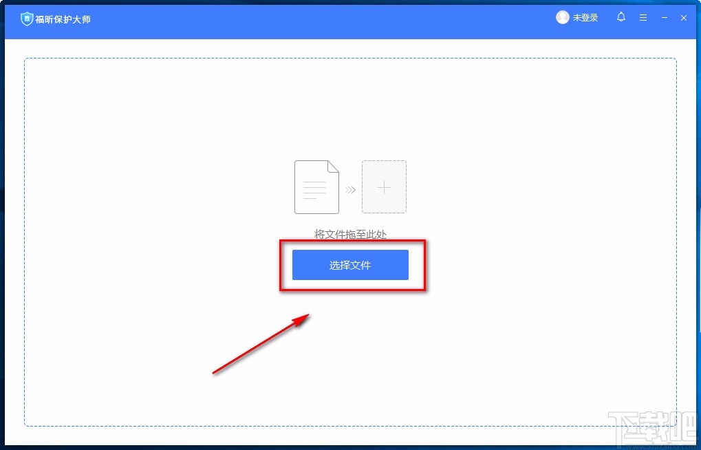 1.首先打开软件,我们在界面上找到“选择文件”按钮,点击该按钮就可以打开文件添加页面,将需要加密的PDF文件添加到软件中。