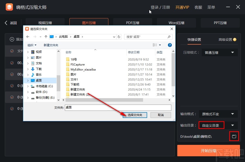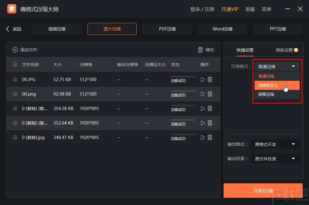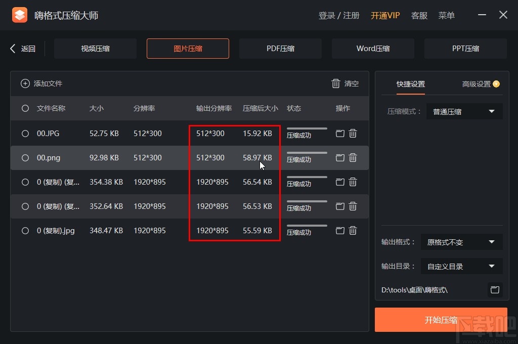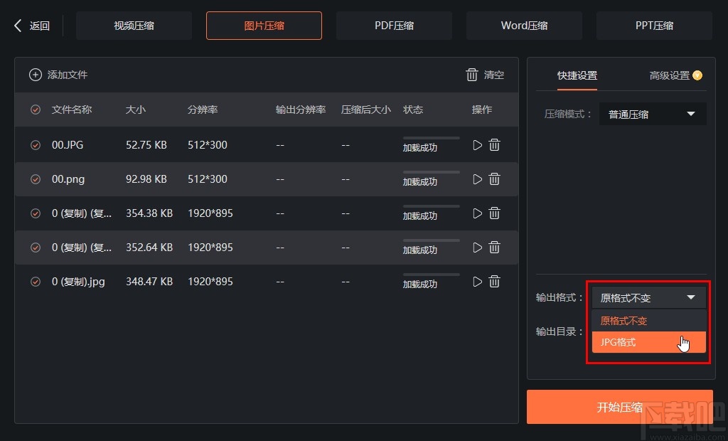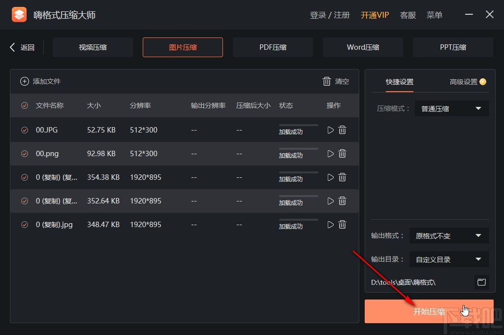 6.最后设置好输出保存目录之后,点击界面右下角的这个开始压缩按钮就可以开始压缩图片的操作了,等到图片压缩完成即可。