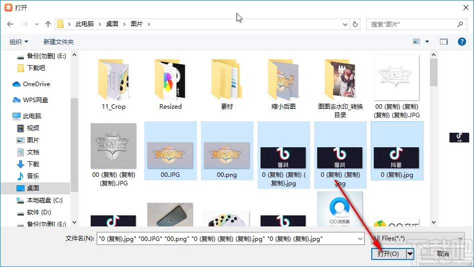 2.进入到图片压缩界面,点击添加文件按钮,点击打开选择文件的界面之后,在这个界面中找到想要压缩的图片,选中之后点击打开按钮。