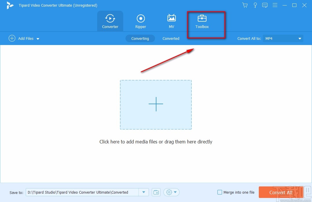 1.首先打开软件,我们在界面上方找到“Toolbox”选项,点击该选项再进行下一步操作。