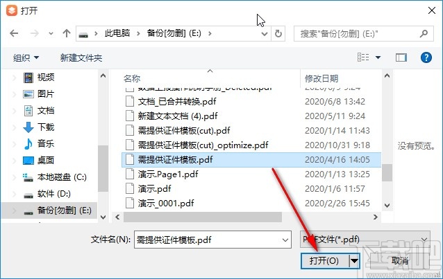 3.点击添加文件之后,接下来下一步在打开的选择文件界面,找到想要压缩的PDF文件,选中之后点击右下角的打开这个功能按钮,找到之后点击进行打开。