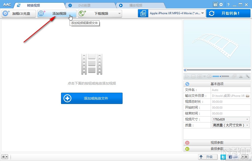 1.首先第一步我们打开软件之后,在界面上方找到添加视频这个功能按钮,找到之后点击进入到添加媒体文件的界面。