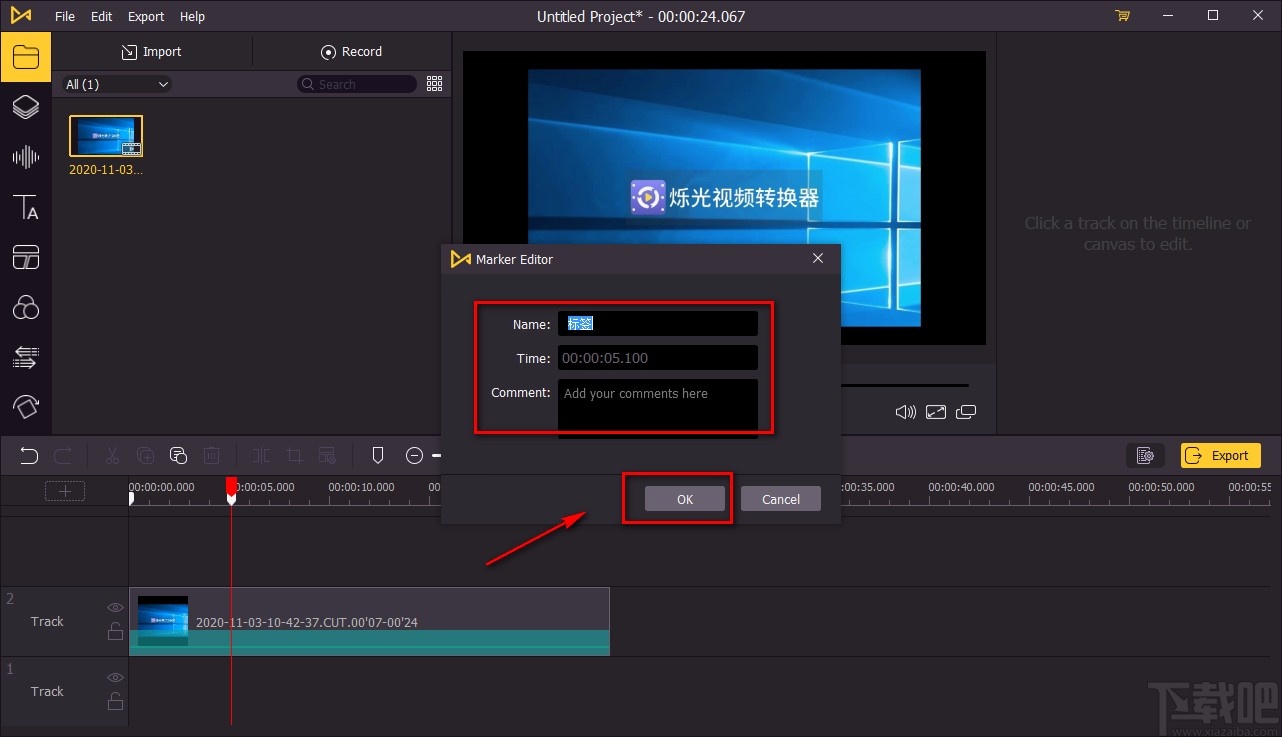 6.接下来界面上就会出现一个编辑窗口,我们在窗口中输入标签名称以及标签内容后,再点击窗口底部的“OK”按钮就可以了。